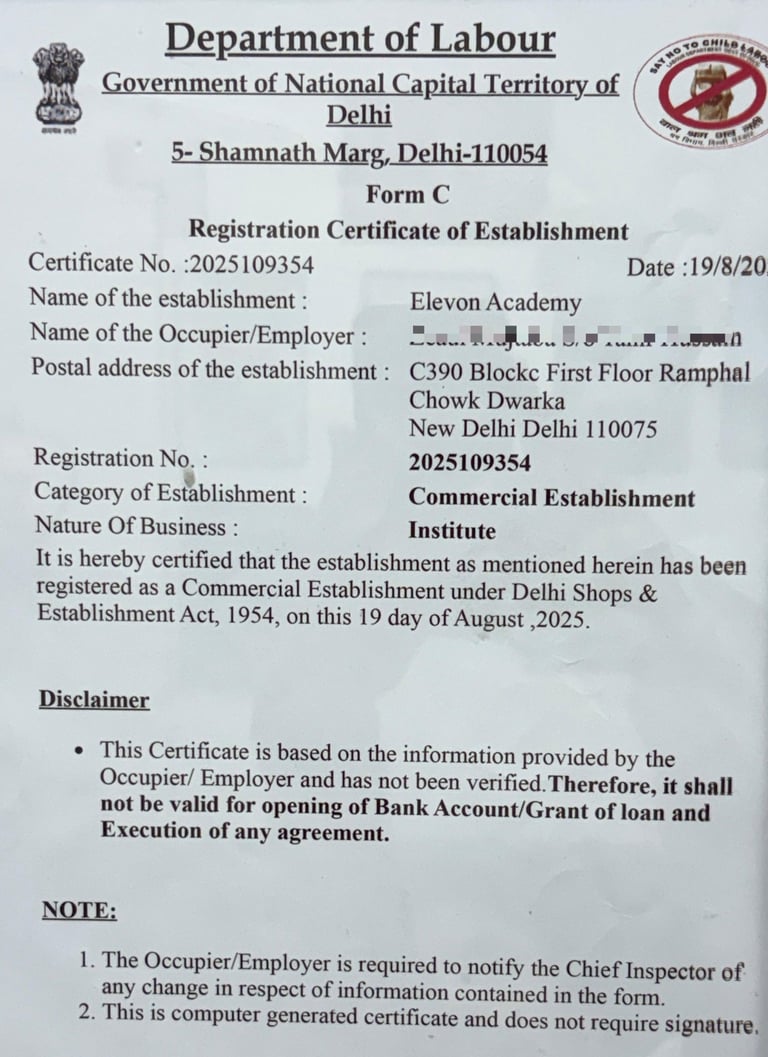Govt. of NCT of Delhi Approved Computer Academy ( Regd. No. 2025109354 )