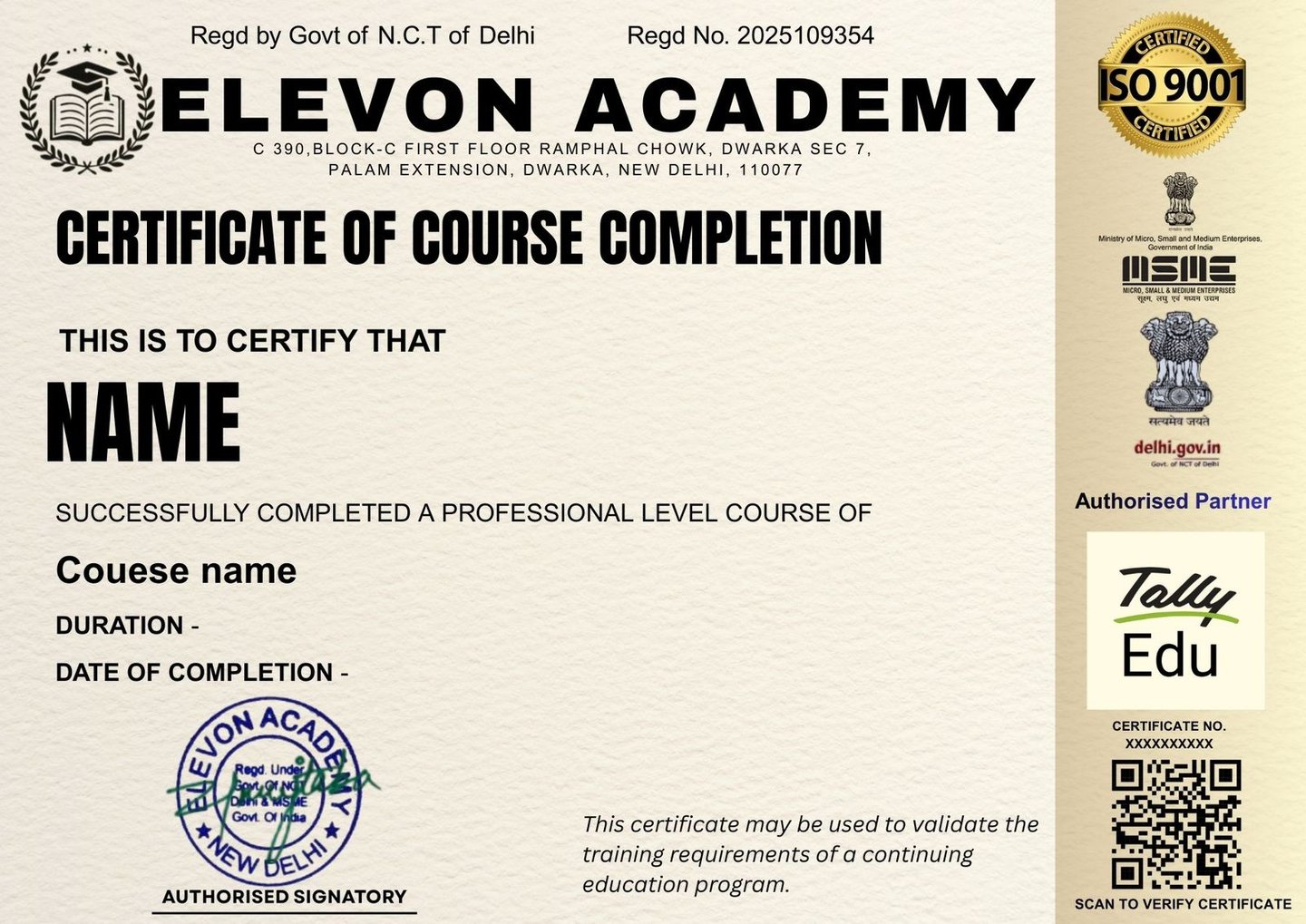 Govt. of NCT of Delhi Approved Computer Academy ( Regd. No. 2025109354 )